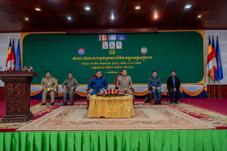 MC. ដោយមានកិច្ចសហការពីរដ្ឋបាលខេត្តសៀមរាប ក្រសួងព័ត៌មានបានរៀបចំពិធីសំណេះសំណាល និងផ្សព្វផ្សាយធម្មនុញ្ញវិជ្ជាជីវៈសារព័ត៌មាន ដល់អ្នកសារព័ត៌មានក្នុងខេត្ត សំដៅបង្កើនការយកចិត្តទុកដាក់គោរពឱ្យបានត្រឹមត្រូវនូវក្រមសីលធម៌វិជ្ជាជីវៈ។ ពិធីនេះបានប្រារព្ធធ្វើឡើងនៅសាលប្រជុំធំសាលាខេត្តសៀមរាប នាព្រឹកថ្ងៃទី១៦ ខែសីហា ឆ្នាំ២០២៤ ដោយមានការអញ្ជើញចូលរួមជាអធិបតីពីសំណាក់ ឯកឧត្តម ជា ច័ន្ទបរិបូរណ៍ រដ្ឋលេខាធិការក្រសួងព័ត៌មាន និងលោកង៉ូវ សេងកាក់ អភិបាលរងខេត្តសៀមរាប រួមជាមួយមន្ទីរ អង្គភាពជុំវិញខេត្ត និងអ្នកសារព័ត៌មានសរុបជិត២០០នាក់ ។