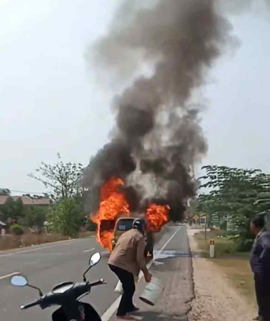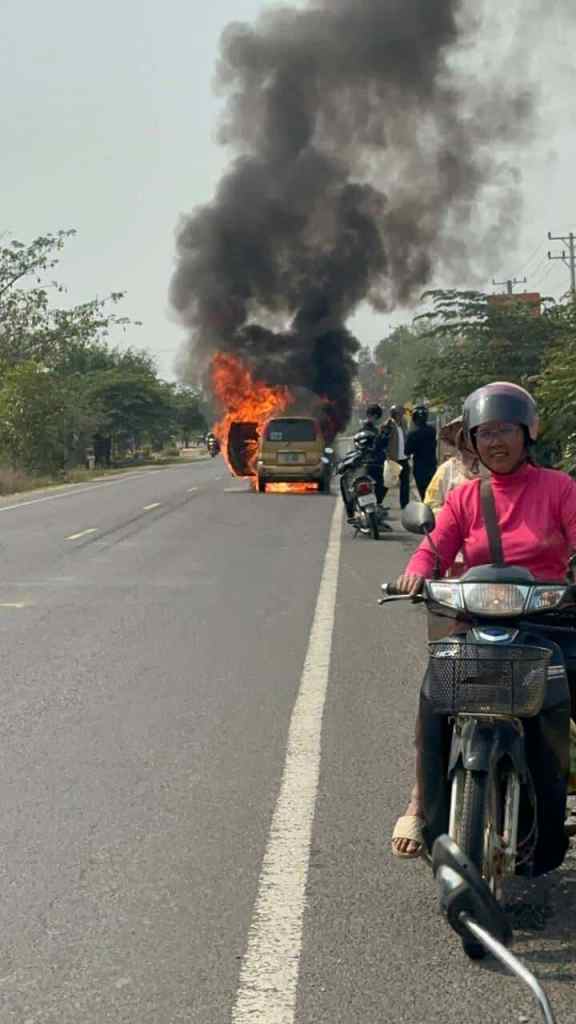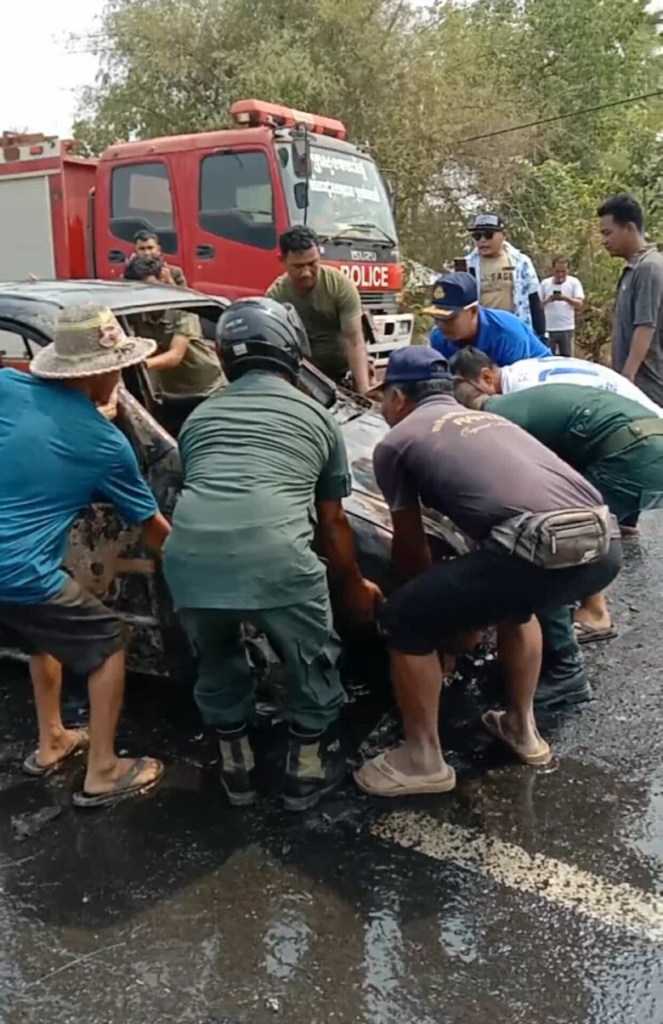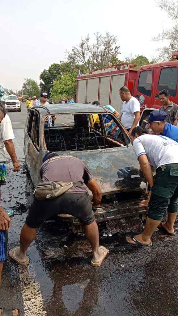 ប្រភពបន្តទៀតថា រថយន្តខាងលើនេះ ខណៈកំពុងបើកបរលើដងផ្លូវសុខៗ ស្រាប់តែម្ចាស់រថយន្ត បានចាប់ហ្វ្រាំងឈប់បន្ទាន់ រួចបើកទ្វារថយន្តរត់ចេញ ហើយស្រែកហៅឲ្យអ្នកស្រុក ជួយពន្លត់ភ្លើង តែមិនរលត់ ក៏ទូរសព្ទហៅសមត្ថកិច្ចនគបាលស្រុកស្វាយទាប ឲ្យជួយអន្តរាគមន៍ ។