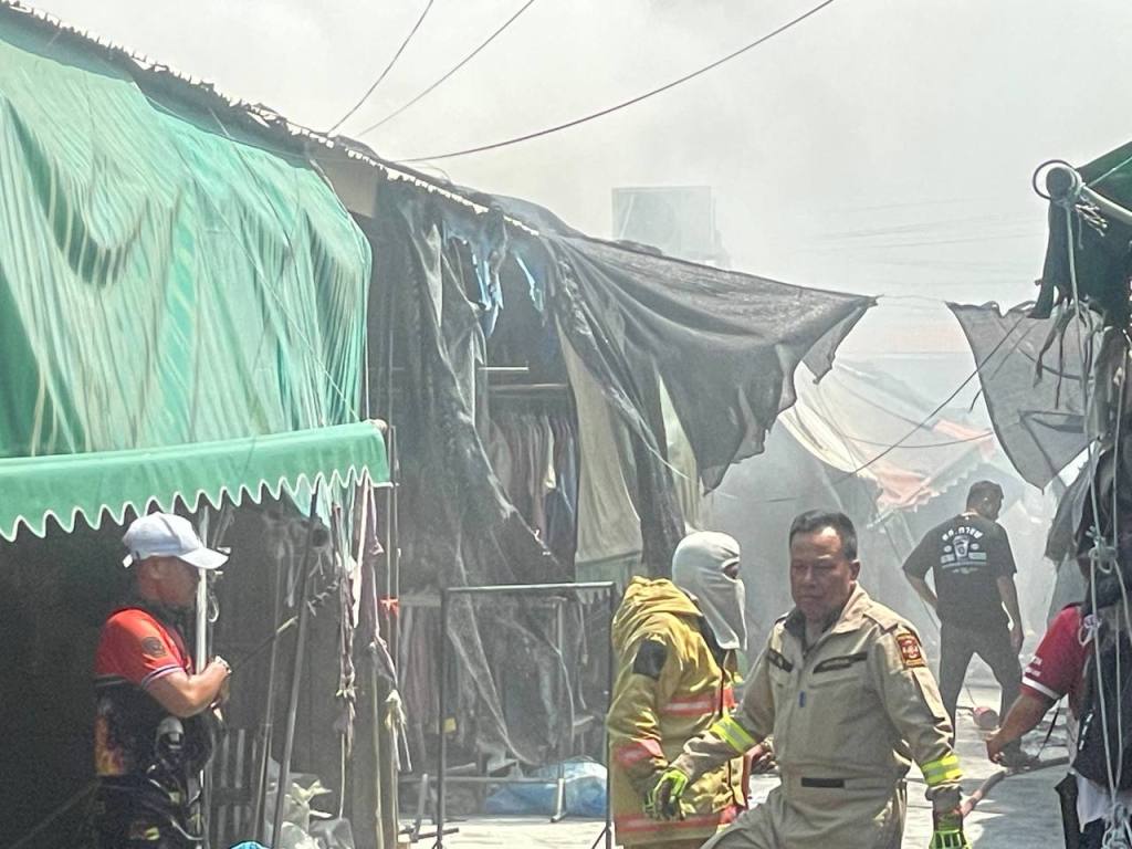 ខេត្តបន្ទាយមានជ័យ ៖ អគ្គិភ័យបានលេបត្របាក់តូបលក់ខោអាវទាហានអស់១តូប ដែលធ្វឱ្យតូបនៅជុំវិញភ័យស្លន់ស្លោ នាំគ្នាជញ្ជូនខោអាវចេញក្រៅ នៅថ្ងៃទី០១ ខែឧសភា ឆ្នាំ២០២៥ នៅផ្សាររុងក្លឿ ស្ថិតក្នុងភូមិប៉ារ៉ៃ ឃុំប៉ារ៉ៃ ស្រុកអារញ្ញ ខេត្តស្រះកែវ ។