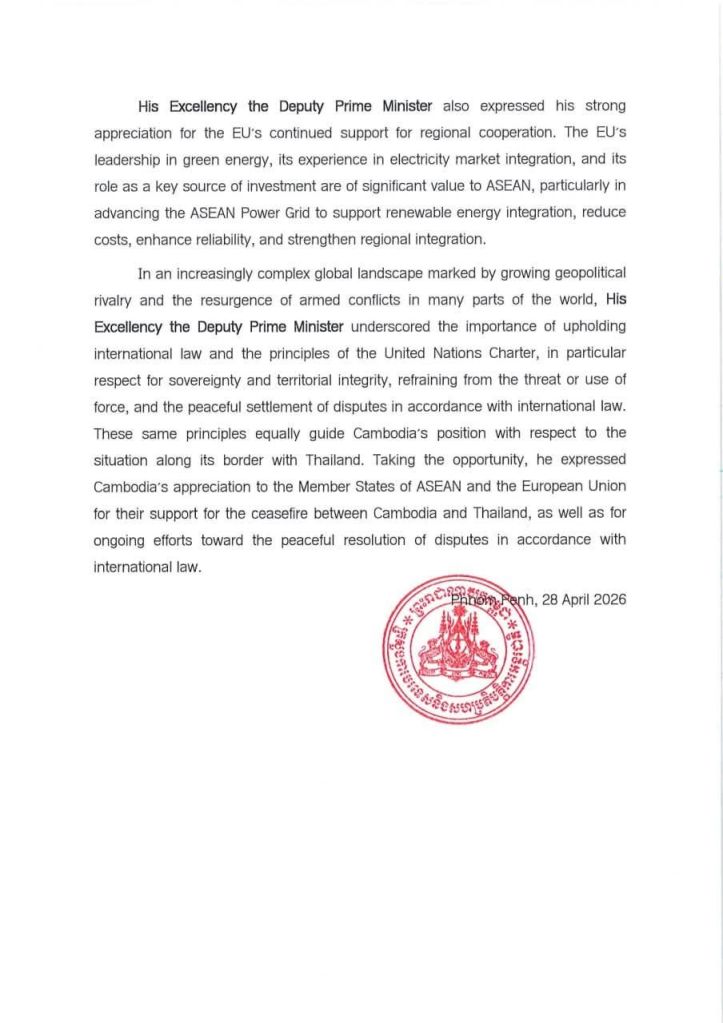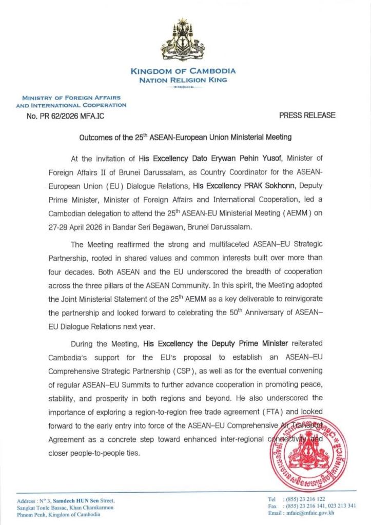 លទ្ធផលនៃកិច្ចប្រជុំរដ្ឋមន្ត្រីការបរទេសអាស៊ាន-សហភាពអឺរ៉ុប លើកទី២៥