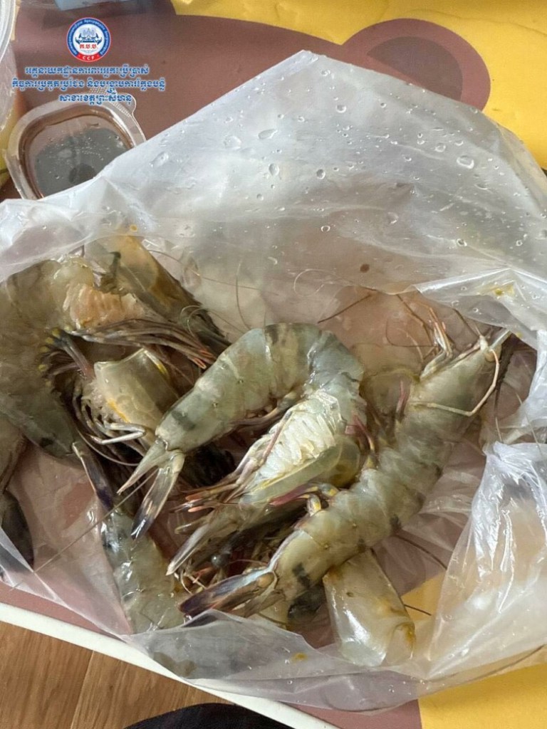 ខេត្តព្រះសីហនុ ៖ មន្ត្រីជំនាញ ក.ប.ប. សាខាខេត្តព្រះសីហនុ បានរកឃើញបង្គា ចាក់ចាហួយ នៅស្តង់លក់គ្រឿងសមុទ្រ មួយកន្លែង ស្ថិតនៅផ្សារលើ ខេត្តព្រះសីហនុ ។