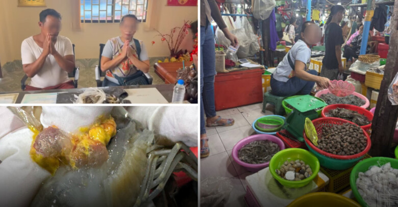 ពិតជាភ្ញាក់ផ្អើល មន្ត្រីជំនាញរកឃើញបង្គាចាក់ចាហួយ ដាក់លក់ក្នុងផ្សារលើ ខេត្តព្រះសីហនុ